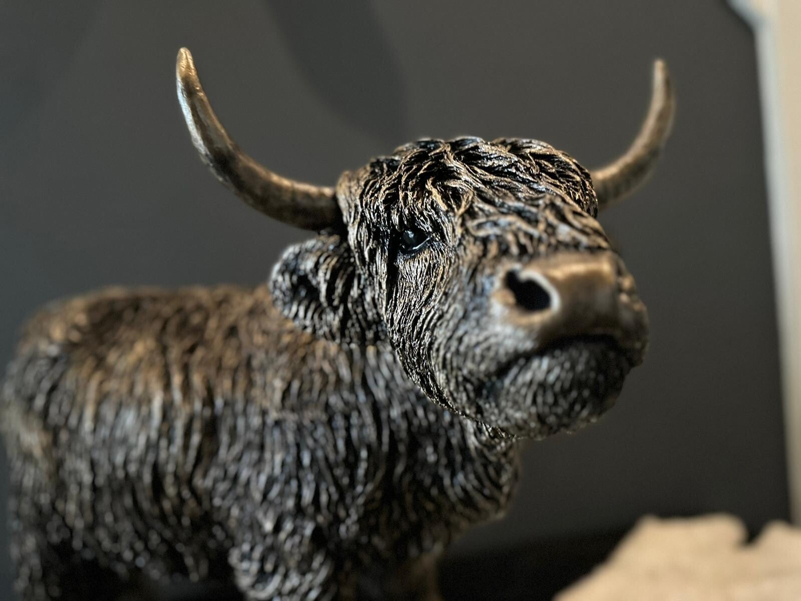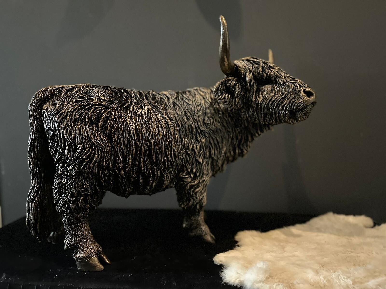 Mooi beeld van een Hooglander. Beeld is 45 cm hoog en 60 cm lang. Lverbaar in brons en orginele kleur