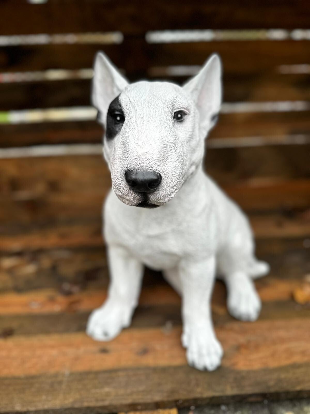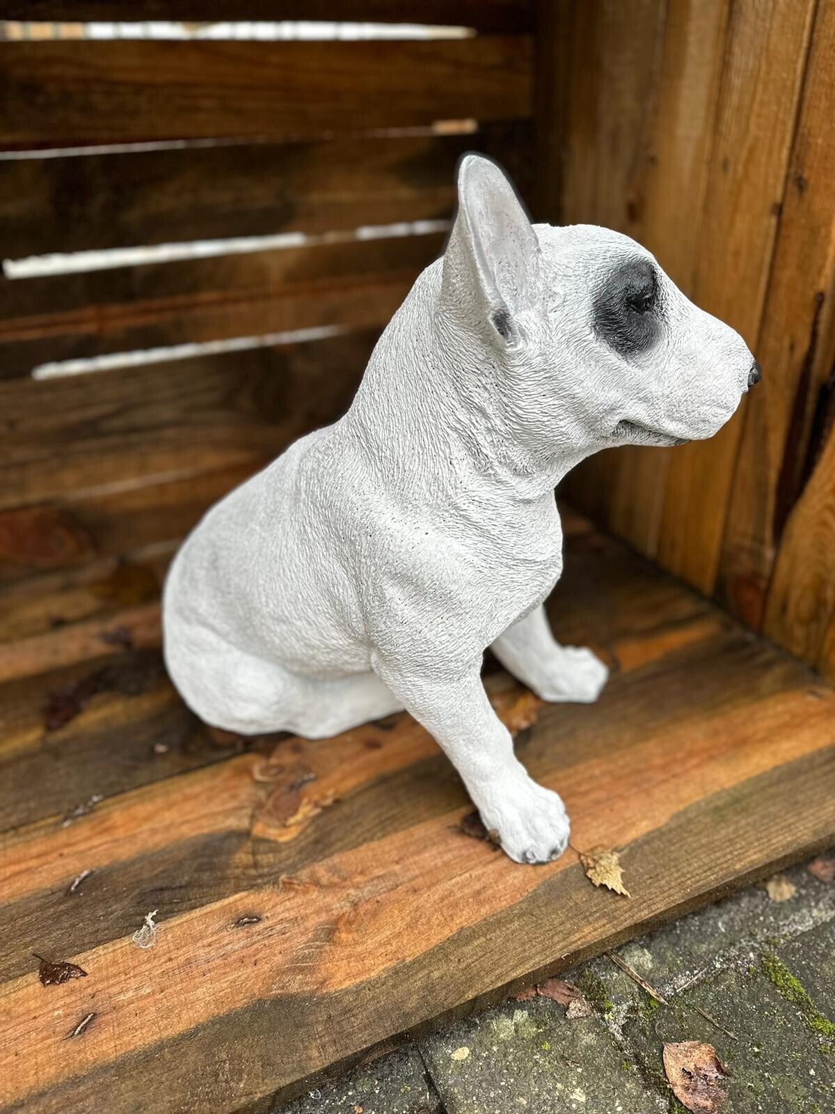 Leuk beeld je van een Bull Terrier. Is 40cm hoog en gemaakt van Polystone.