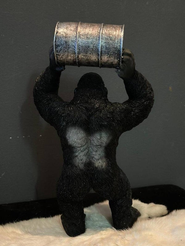 Deze Gorilla is zoals Donkey Kong. Tilt ook moeiteloos een ton boven zijn hoofd. Super mooi en stoer beeld voor in uw mancave of interieur. Beeld is 35cm of 65cm hoog.