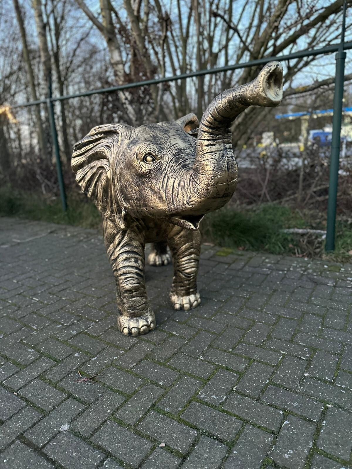 Dit indrukwekkende olifantenbeeld, met een lengte van 175 cm, straalt kracht, wijsheid en elegantie uit. Het beeld is gedetailleerd vervaardigd met aandacht voor realistische kenmerken, zoals de sierlijke houding. Gemaakt van duurzaam materiaal zoals polyresin l, is het geschikt voor zowel binnen- als buitengebruik.