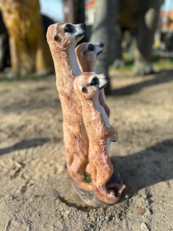 Haal de schattige en waakzame uitstraling van stokstaartjes in huis of tuin met dit prachtige groep stokstaartjes beeld! Dit gedetailleerde decoratiestuk toont meerdere stokstaartjes die samen staan en alert hun omgeving observeren. Hun nieuwsgierige houding en realistische details maken dit beeld een ware eyecatcher. Gemaakt van hoogwaardig, weerbestendig materiaal, waardoor het perfect is voor zowel binnen als buiten.