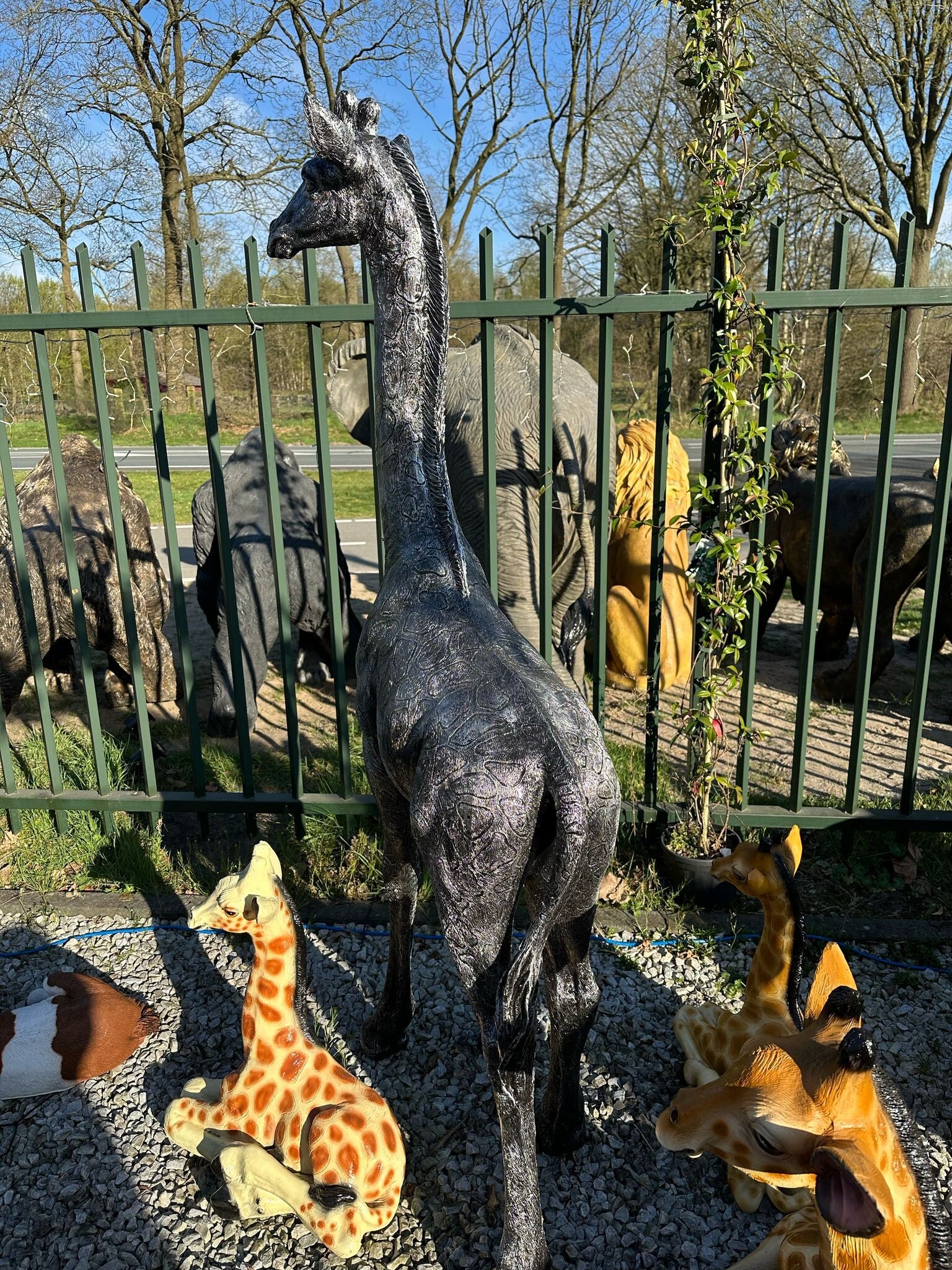 Mooie leuke giraf van 185cm hoog. Deze is in de kleuren bronsen zilver leverbaar.