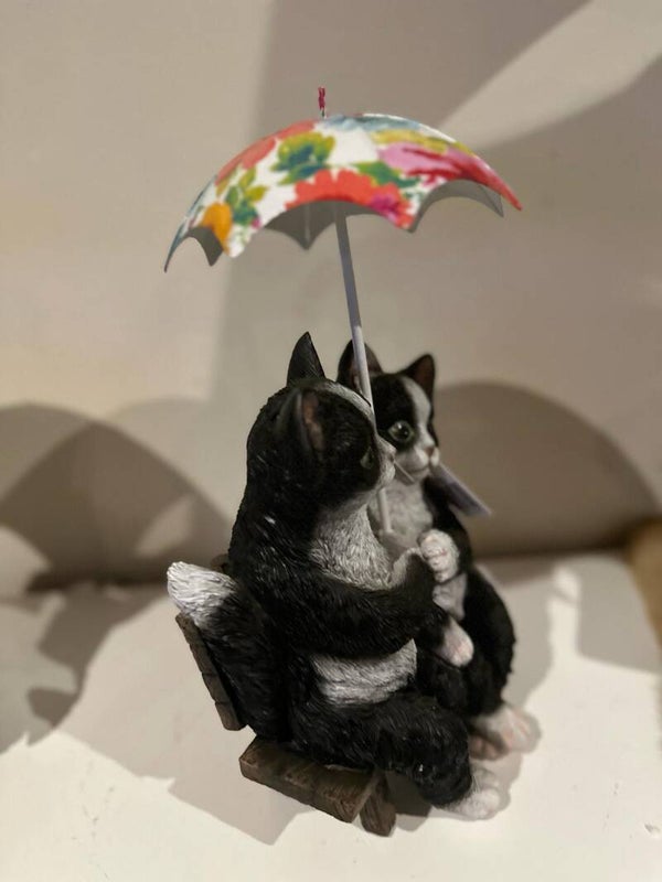 Breng warmte en gezelligheid in huis met dit charmante beeld van twee poezen op een bankje. De gedetailleerde afwerking en schattige houding van de katten maken dit beeld tot een echte blikvanger. Gemaakt van duurzaam polyresin, waardoor het geschikt is voor zowel binnen- als buitengebruik. Perfect als decoratie voor op een vensterbank, plank of tuintafel – of als een liefdevol cadeau voor iedere kattenliefhebber.