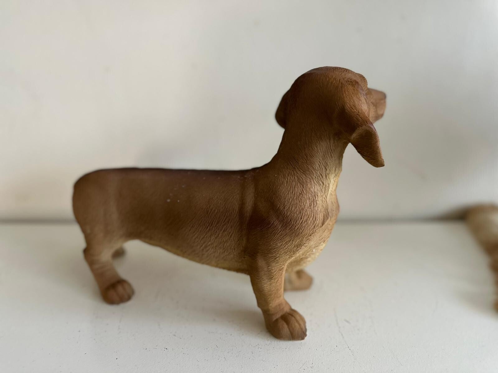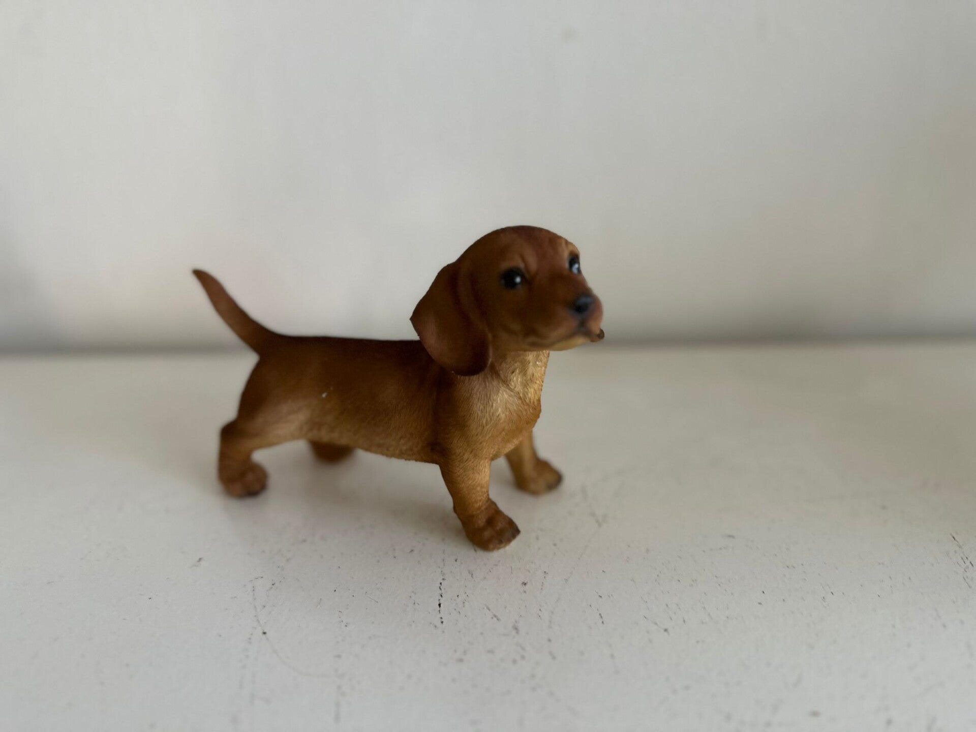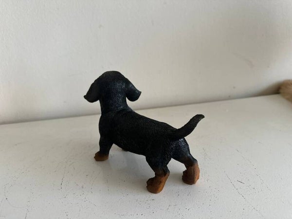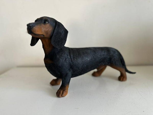 Decoratief beeldje van een staande teckel, gemaakt van hoogwaardig polystone. Dit realistisch vormgegeven hondje is met oog voor detail afgewerkt en verkrijgbaar in een natuurgetrouwe bruine of zwarte kleur. Met een hoogte van 11, 20 of 25 cm en een lengte van 18, 30 of 40 cm is dit beeldje een stijlvolle aanvulling op elk interieur of tuin. Perfect voor hondenliefhebbers of als uniek cadeau.