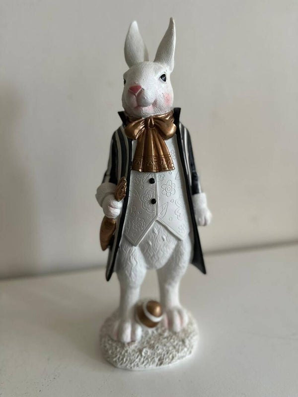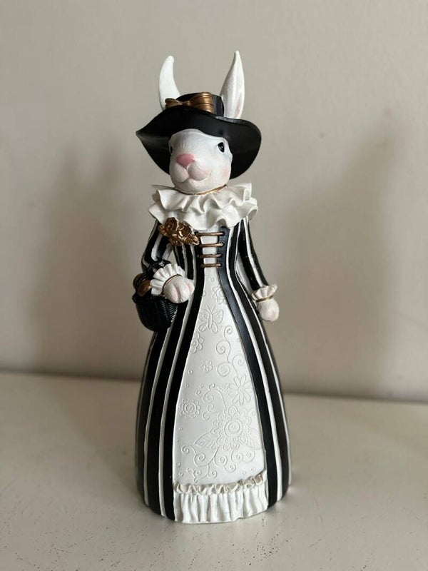 Deze exclusieve konijnenbeelden (man of vrouw) van maar liefst 35 cm hoog vormt een stijlvolle en speelse eyecatcher in elke ruimte. Het konijnenpaar is uitgevoerd in een paleis-look met een legante slipjas of baljurk, waarbij de mannelijke variant kracht en statigheid uitstraalt, terwijl de vrouwelijke variant charme en verfijning toevoegt.